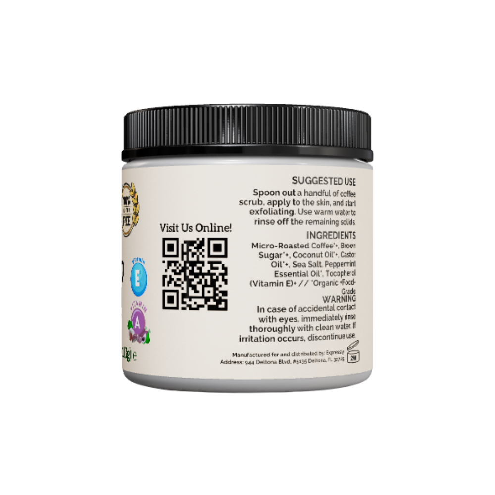 Our Peppermint Coffee Scrub is crafted from the finest ingredients to ensure your skin receives the nourishment it deserves. Here’s a breakdown of what’s inside: