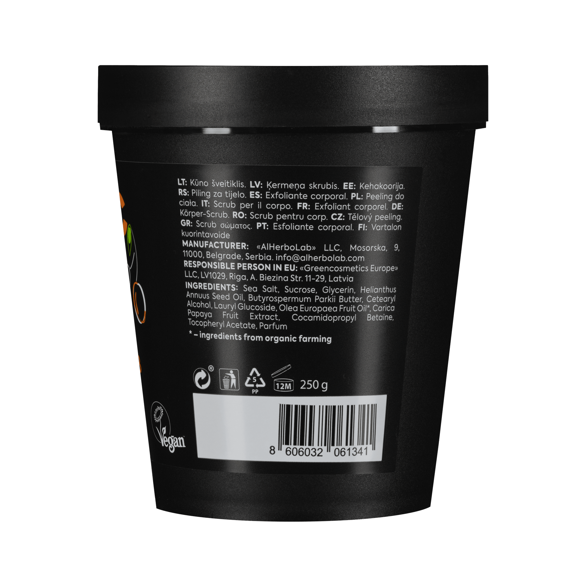 Body Scrub based on sugar and sea salt deeply cleanses and exfoliates the skin, stimulates the process of regeneration of the skin, making it smooth and velvety
