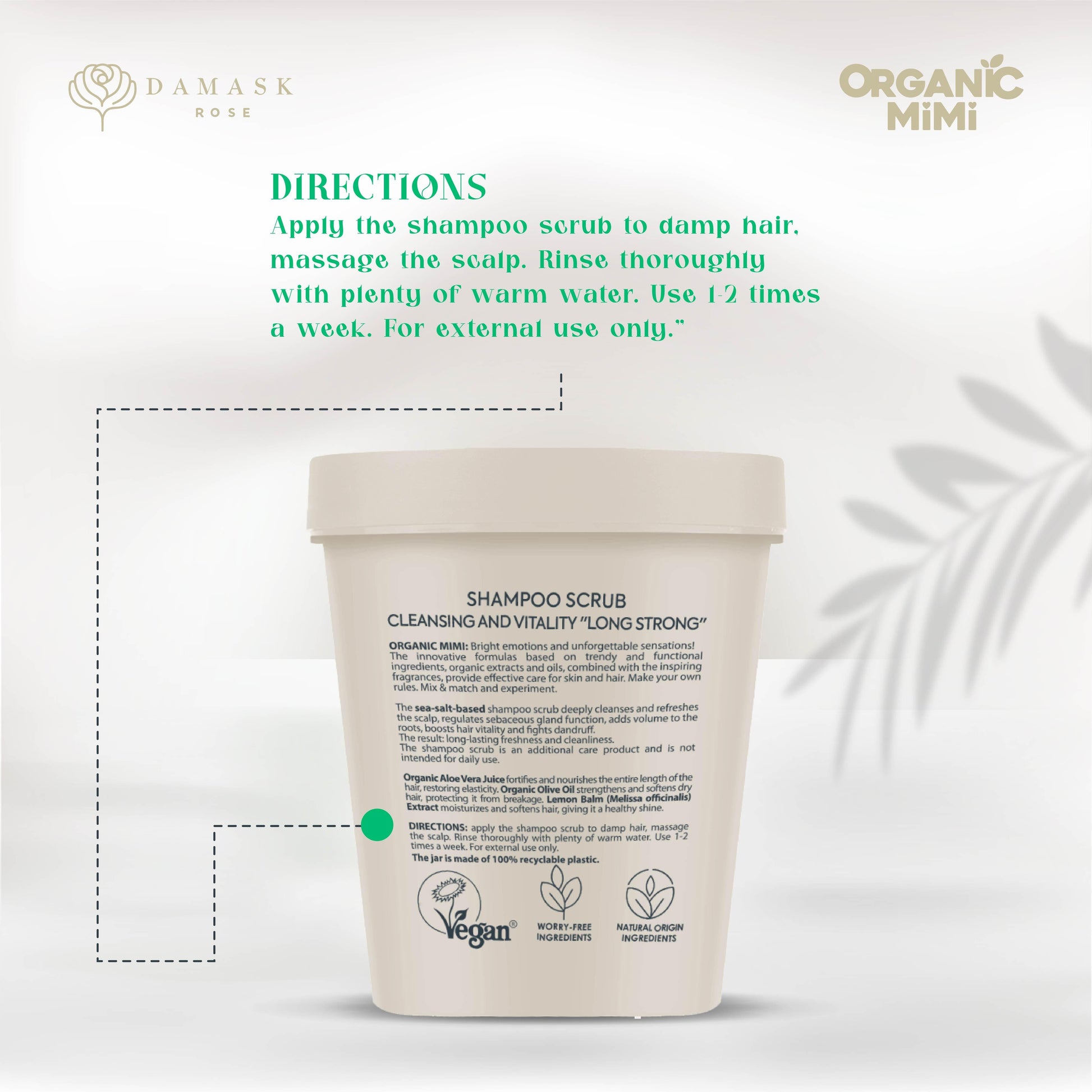 DIRECTIONS: Apply the shampoo scrub to damp hair, massage the scalp. Rinse thoroughly with plenty of warm water. Use 1-2 times a week. For external use only.